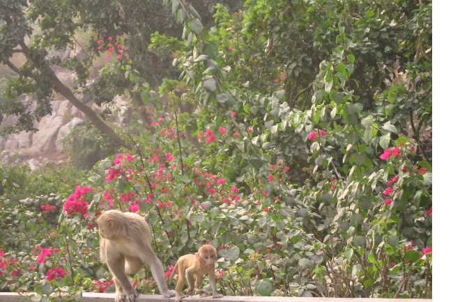 One day as I strolled with a godbrother in Vrindaban, a monkey jumped from a tree onto my godbrother’s shoulder, snatched his glasses, then jumped onto a nearby building, and scampered up to the third-floor balcony. Then he sat down to chew on his new booty.